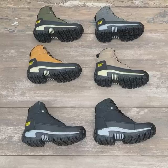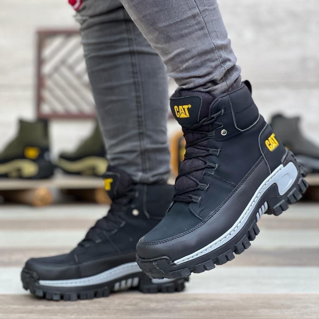NUEVA COLECCIÓN PREMIUM CAT SILVER Material: - Sintético base cuero importado. - Cuello hecho en malla reforzada en produeva para mayor confort, ajuste y protección al tobillo. Marquillas: En pvc bicolor tipo original. Logos: En la lengüeta y laterales repujados en forma industrial para más perfección. Suela: CAT tipo original en expanso, pintura pvc con línea de costura. Cordoneras: en riata con doble costura para mayor duración. TALLAS: 37 AL 43